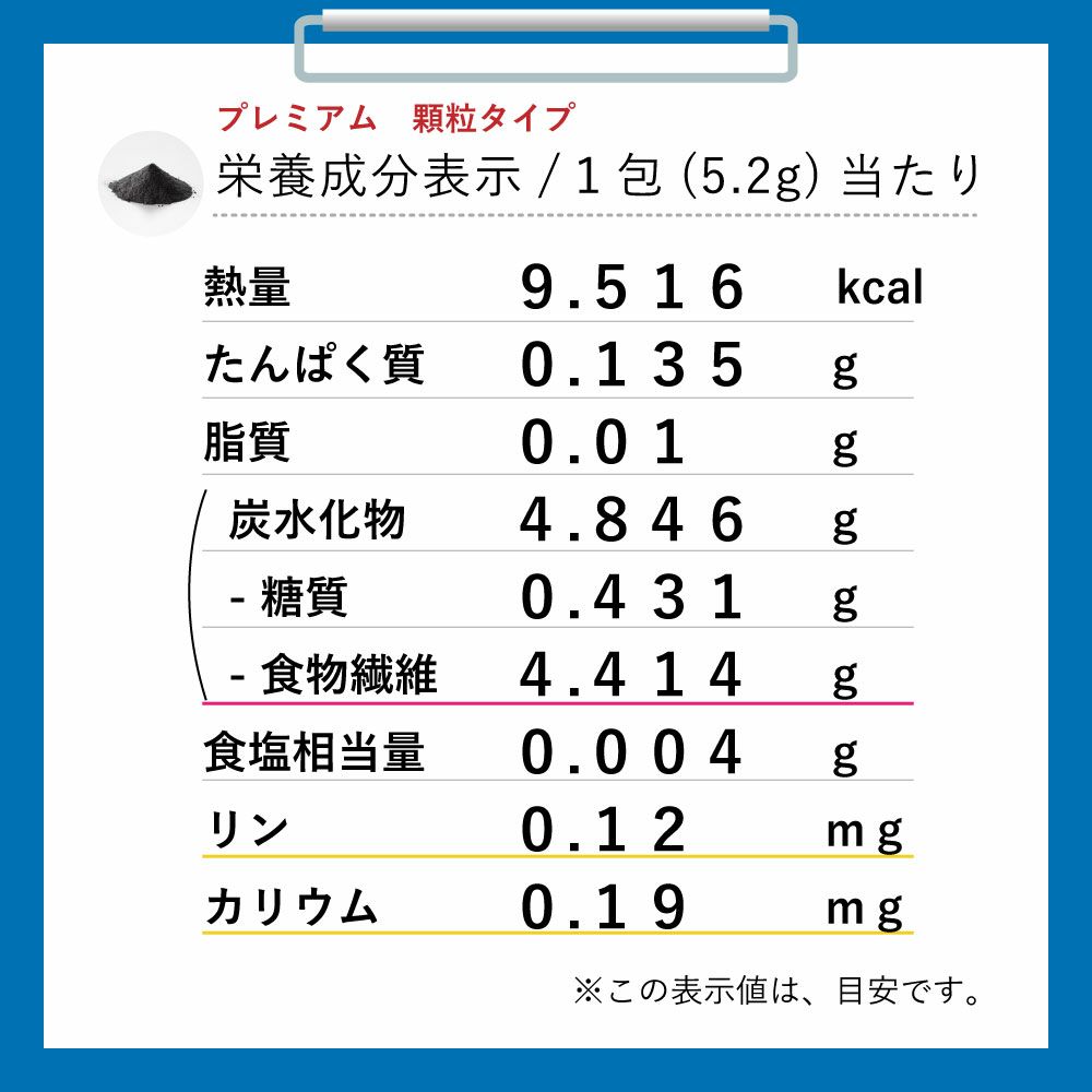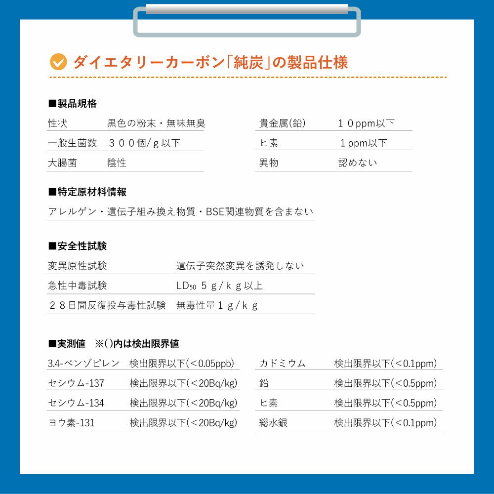 純炭粉末に乳酸菌とイヌリン、水溶性食物繊維を1包にたっぷり追加配合したシリーズ最上級品です。