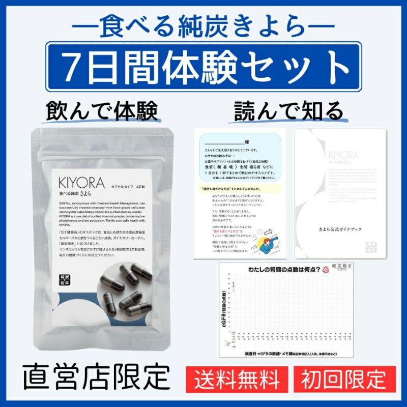 食べる純炭カプセル7日間体験セット(1週間分目安42粒)は純炭粉末をより知ってもらうための「お試しサイズ」です。